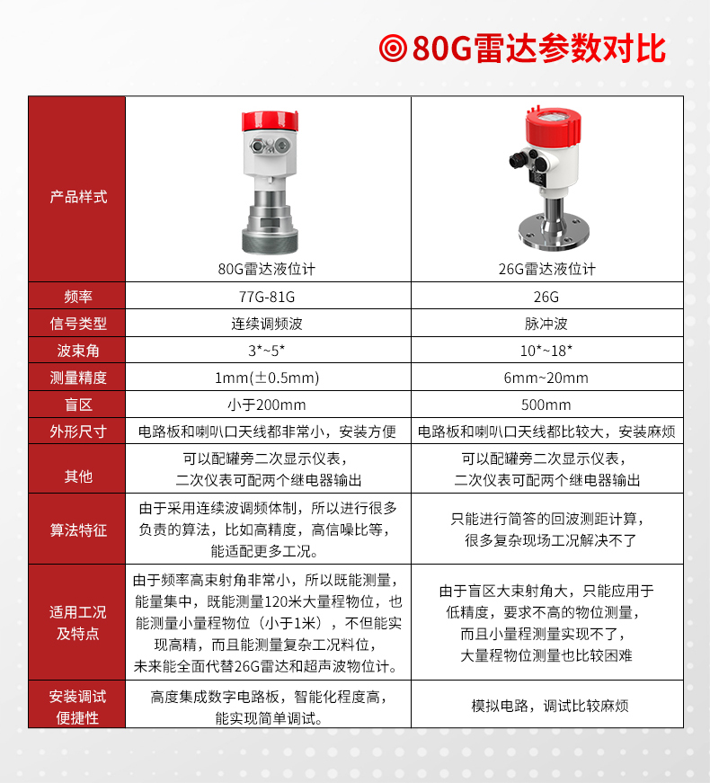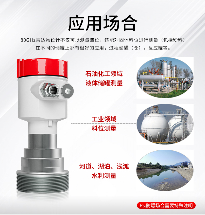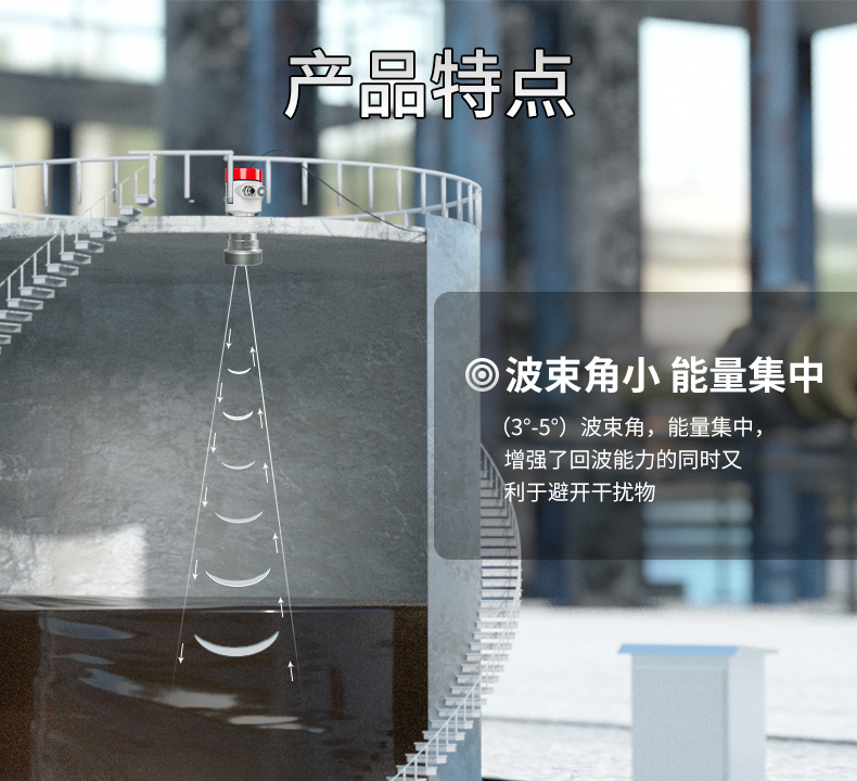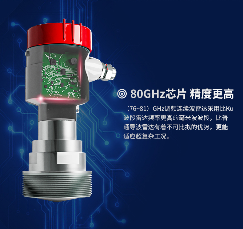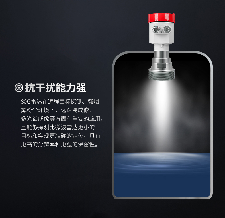 作为用于工业测量领域的78GHz波段雷达,高精度、非接触式物位和液位测量,具有其他普通微波脉冲雷达、导波雷达不可比拟的优势,极窄的波束和穿透能力,更能适应超复杂的工况,而不减弱测量性能。