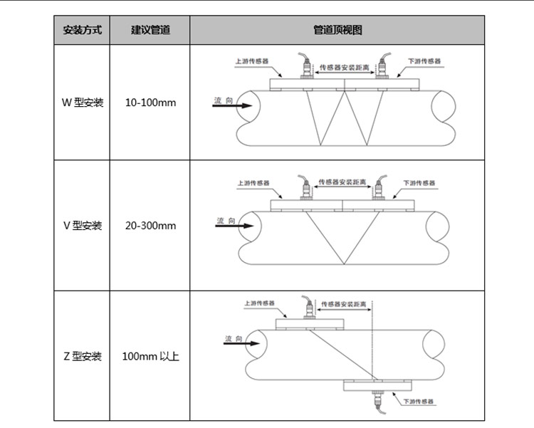 2、传感器安装简便,适用于测量各种大小管道导声介质