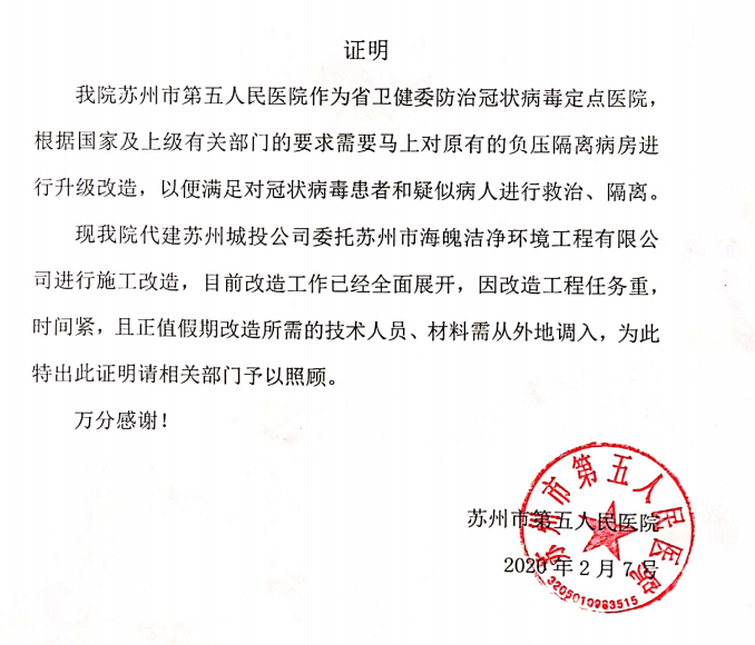 与疫情赛跑!美控助力苏州第五人民医院负压病房建设