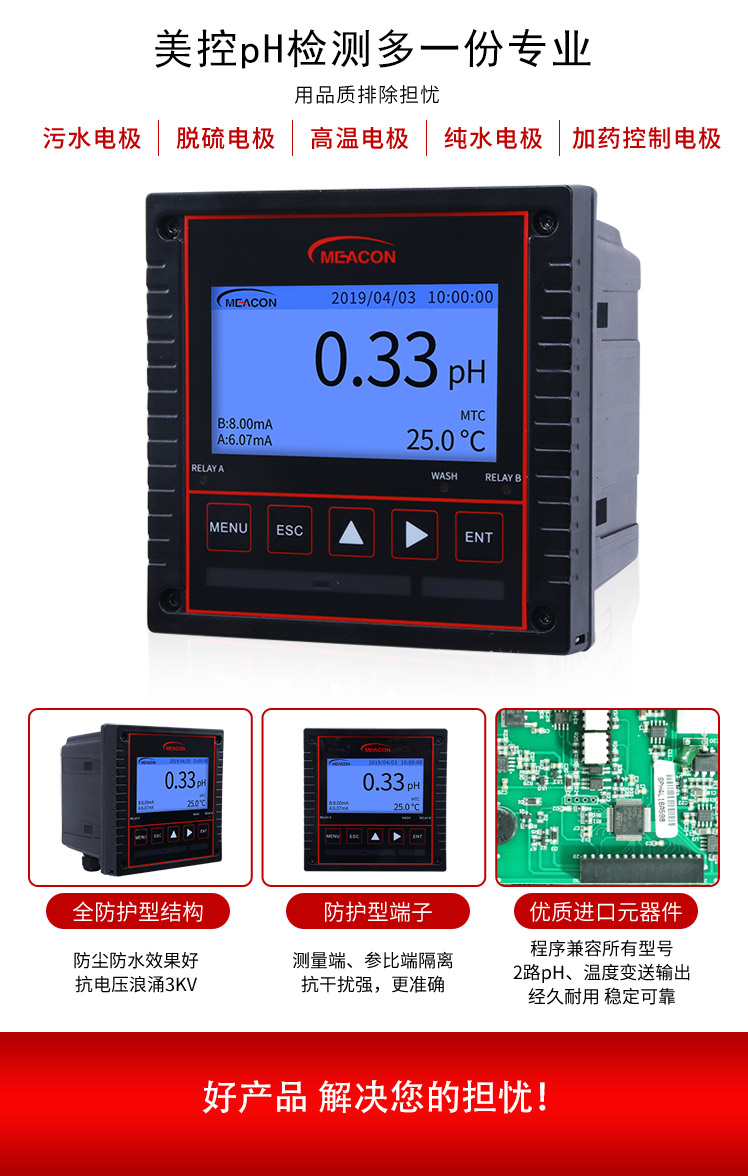 MIK-PH8.0控制器是一款智能在线水质分析仪表,用于在线监测pH/ORP值的控制器,通过RS485或电流变送输出到监控室进行记录保存。广泛应用于火电、化工化肥、冶金、环保、制药、生化、食品和自来水等行业。