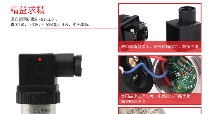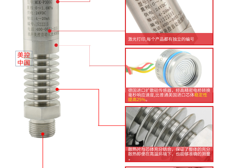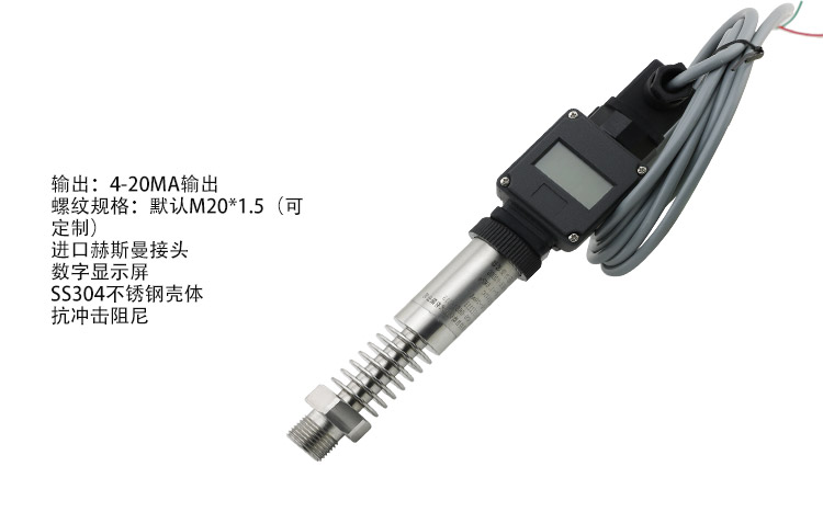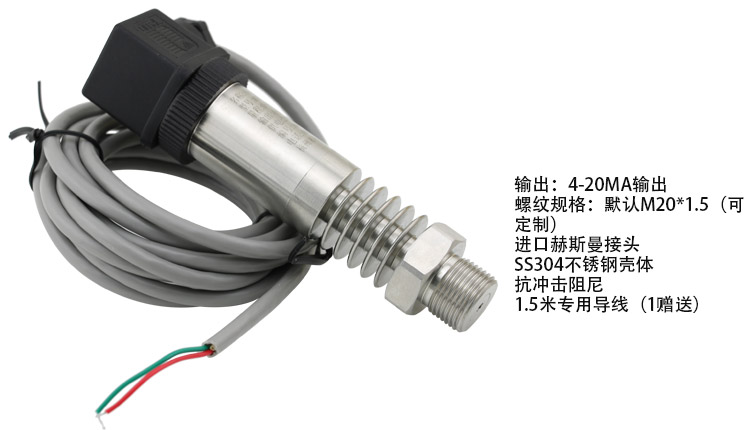 MIK-P300G耐高温压力变送器压力敏感核心采用了高性能的硅压阻式压力充油芯体,内部的专用集成电路将传感器毫伏信号转换成标准电压、电流或频率信号,可以直接与计算机接口卡、控制仪表、智能仪表或PLC等方便相连。运距离传输可以采用电流输出方式。具有体积小、重量轻、全不锈钢密封结构,可在腐蚀性环境中工作。该产品安装方便简洁,具有非常好的抗振和抗冲击性能,广泛应用于过程控制、航空、航天、汽车、医疗设备、 HVAC等领域。