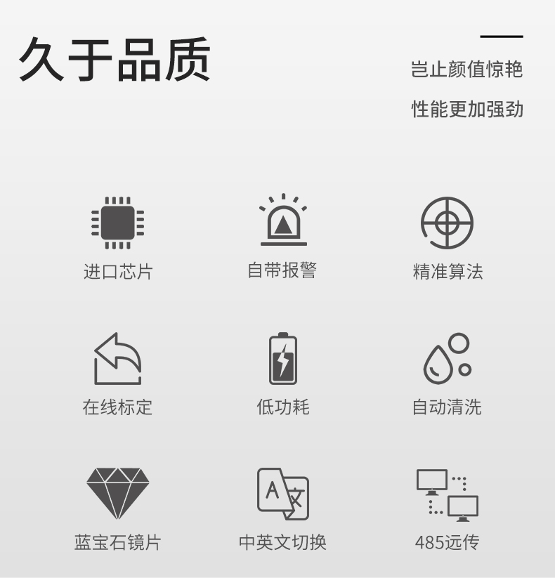 MIK-PTU300浊度在线分析仪是针对饮用水水质在线监测,量身研发的具有自主 知识产权的专利产品,具有超低浊度检出限、高精度测量、设备长时间 免维护、省水工作和数字化输出的特